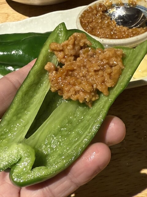 ・パリパリピーマン肉味噌添え