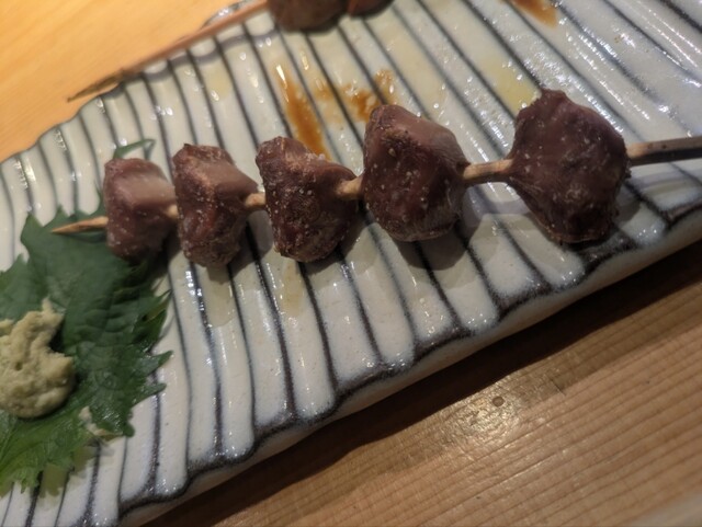 この鶏の鮮度なればこそ食べられる腎臓を初めて食べたが、鶏の白子付きという滅多に食べられない串だった。。。