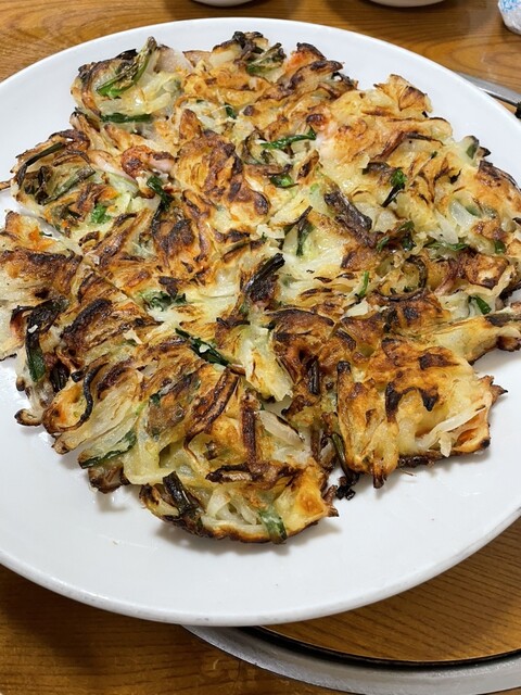 今回は近所の仲間を誘い、海鮮チヂミとホルモン鍋を中心にあれこれと楽しみました。もう一人いたらカムジャタンも頼んだかもww