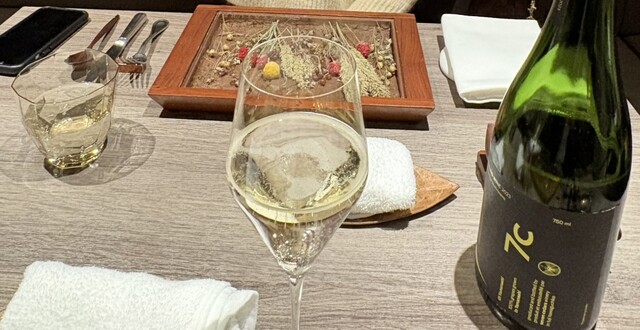 まずは、スパークリングワインで乾杯(確か2200円くらい)。山梨県産ぶどう100%スパークリングワイン。柑橘系の爽やかさが感じられて、とても気に入りました。