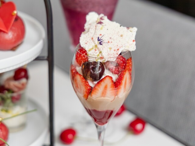 パフェはかわいい見た目だけでなく、ストロベリー、ラズベリーなど色々な食感が楽しめて贅沢な一品。