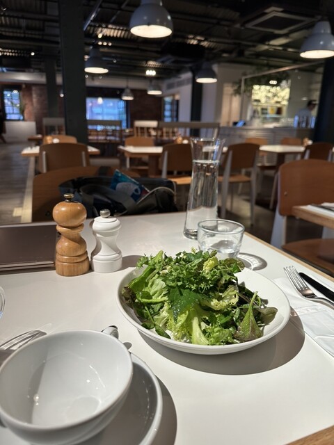 今日は一人でパンケーキが食べたかったので、グリーンサラダを先にいただきました。飲み物はカモミールティーにしました。サラダは、野菜の香りがいろいろしてドレッシングとマッチしていておいしかったです。パンケーキは写真忘れましたが、ベリーを含むパンケーキにフレッシュないちごとピスタチオがアクセントになりおいしかったです。大満足でした。