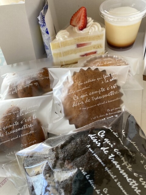 奥から パイシュー¥230.栗のロールケーキ¥240.タルト·オ·マロン¥220.フィナンシェ·ピスタチオ¥130.マドレーヌ·ショコラ¥120