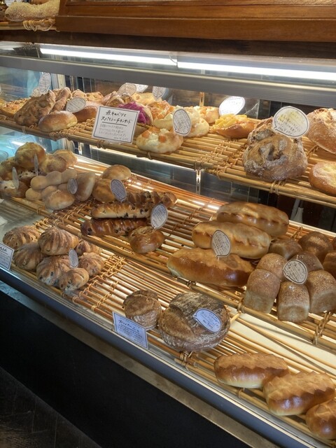 テイクアウトするつもり無かったのですがショーケース覗いてしまい、いちじくパンとぶどうパンを選びました
