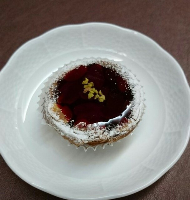 ベリーのムースケーキ。鮮やかな赤いケーキは気分も上がります♪