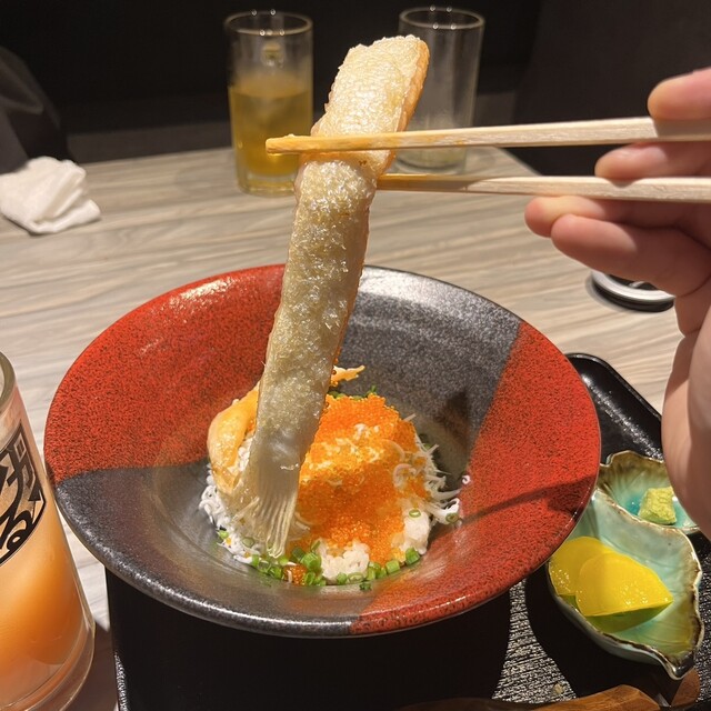 皮目カリッカリッでじゅわっと脂が広がるハラス、とびっこ、しらすを混ぜ混ぜしてかきこめば、ハラスの旨味たっぷりの脂がとびっこ、しらすを包み込む至福の一口が楽しめます