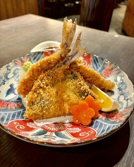 『サクふわ真鯵フライ』 サクッと香ばしく揚げた衣の中から、ふっくら肉厚な真鯵の旨みがじゅわっと広がる! ソースはもちろん、醤油×わさび×大根おろしでさっぱり楽しむのもおすすめ✨ レモンを添えても相性◎