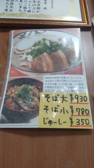 15分位並ぶと店内に入れました。メニューは「そば大@930」「そば小@780」「じゅーしー@350」の3種なので提供は早く回転も良いのです。