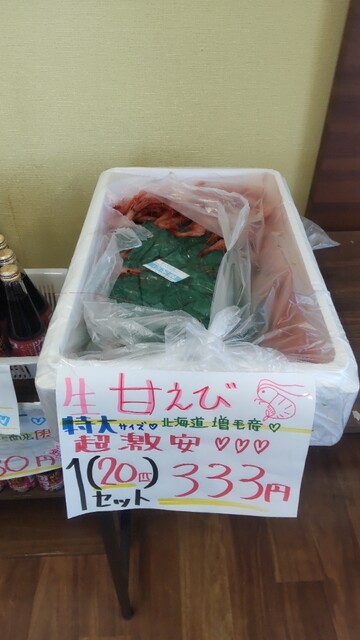 甘エビは新鮮で殻を取りながら頭もチュウチュウ吸いながら美味しく食べました。20尾で333円はあり得ない価格です。