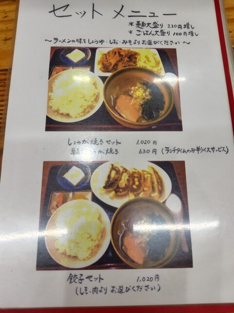味噌ラーメン+ミニチャーハン+小鉢のおひたし、お新香、豆腐が付きます。