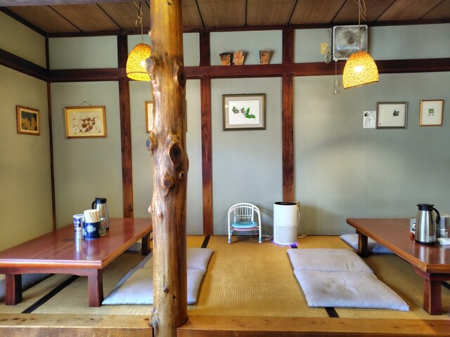お店に入ると4人用テーブル席が2つと、小上がりに4人用の席が2つ、奥にカウンター席が2席位の合わせて18名が入れる程度です