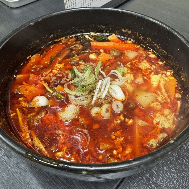 ちょうど良い辛さにスープは出汁が効いていて美味しく具沢山!