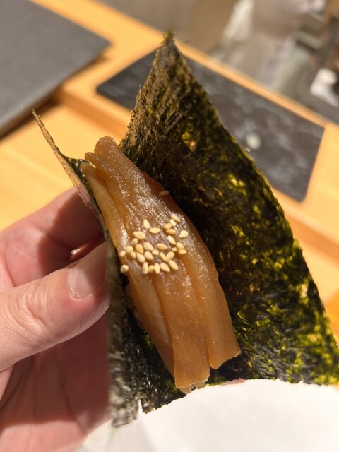 アメリカから来た客人を連れて、職場の同僚と。大将のおまかせを頂きました。赤酢のしゃりにとても計算され尽くした熟成のねたがしっくりとあい、全て楽しみながら頂きました。大将はアメリカ人にも英語で一つずつねたの説明をされ、本当に場も明るく、素晴らしい接客でございました。アメリカ人の客人も大満足で、アメリカで普段食べるSushiとは「魚は無論だが、まずrice(の素晴らしさ)に驚いた」と。さもありなむ。又少人数でじっくりと大将と会話しながら食べたいと思いました。