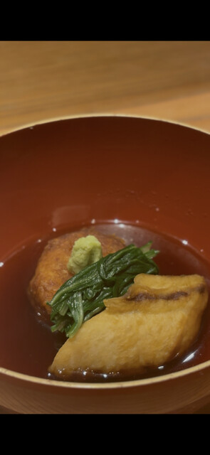 湯葉に包まれた挽き⾁は⼤⼭鶏。