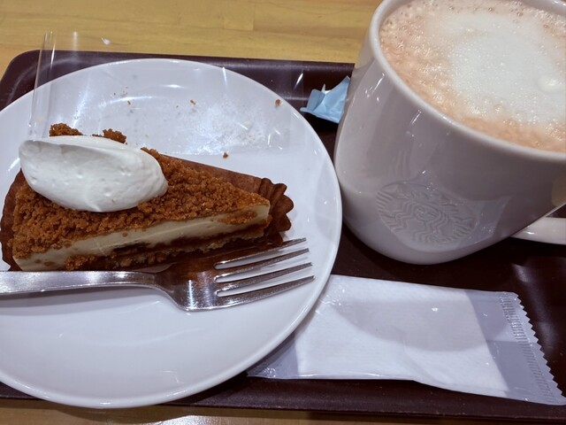 croquantというフランス語でカリカリとしたという意味らしいです。飴で焼いたアーモンドをまぶしたパンです。カフェミストのミルクをアーモンドミルクに変えて合わせるとアーモンド感?がまします。ミルクの変更は無料でしてくれます。