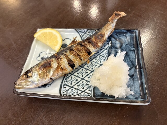 朝開き干物が綺麗に並んでいるので、トングを使って自分で好みの干物をお皿に入れて席で待つと、干...