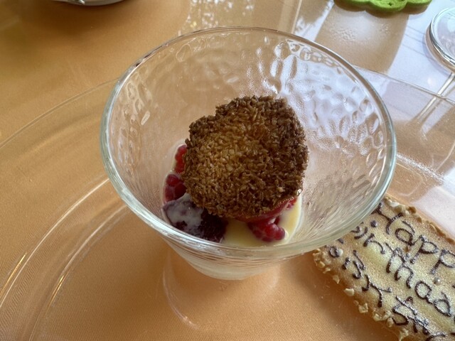嬉しいサービスに感謝です♡お誕生日には無料でメッセージ♡お友だちにはサプライズでご用意をお願いしましたので、とても喜んでもらえましたメニューは煮込み牛のほっぺがとても柔らかく美味しゅうございました♡また、コーヒーは2杯までサービスとのこと、コーヒー好きにはありがたいです♡