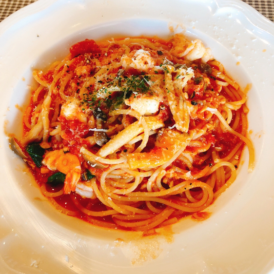 主人のトマトパスタは小えびのトマトパスタなのに、これ小えびなの?と大きくてびっくり(^^)