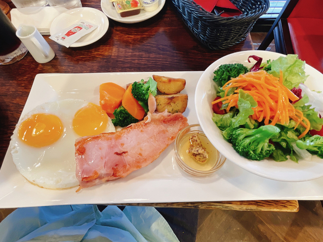 主人の方は厚切りのハムが塩気も抑えられていて、目玉焼きも良い感じに焼かれていて、凄く美味しいと。