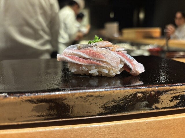 イワシ…銚子産。身が細く切ってあり、骨が気にならず。先程のマグロと同様にシャリとすごく合う感じです。
