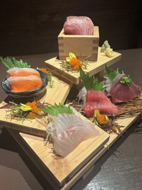 階段盛り…ぶり、さーもん、スズキ、赤み、カツオがふた切れづつ乗っており、1切れが大きく、新鮮で美味しい…それでいてなんと500円と驚きのコスパ!これは絶対頼まないといけないやつですね(^^)