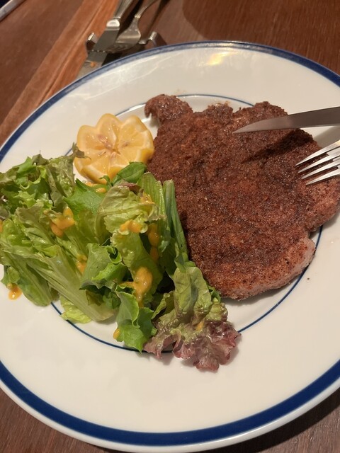 カツレツは、肉なのか油なのかめちゃくちゃ味濃くてうまい!レモンで食べさせるスタイル