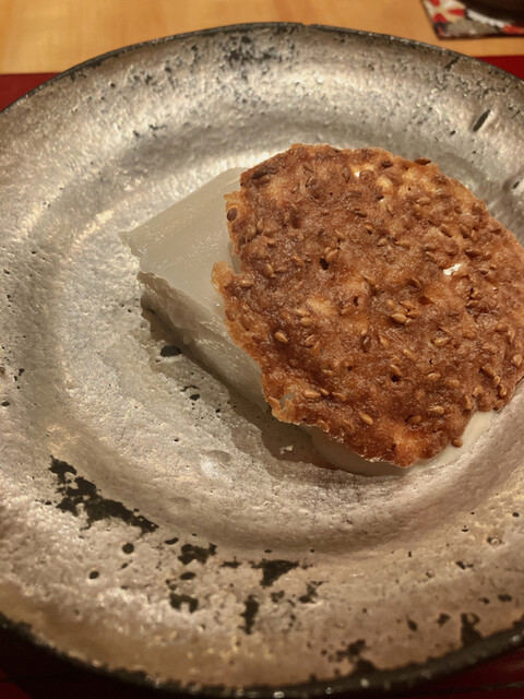 胡麻の煎餅と生クリームを添えてあり、優しい味わいです。