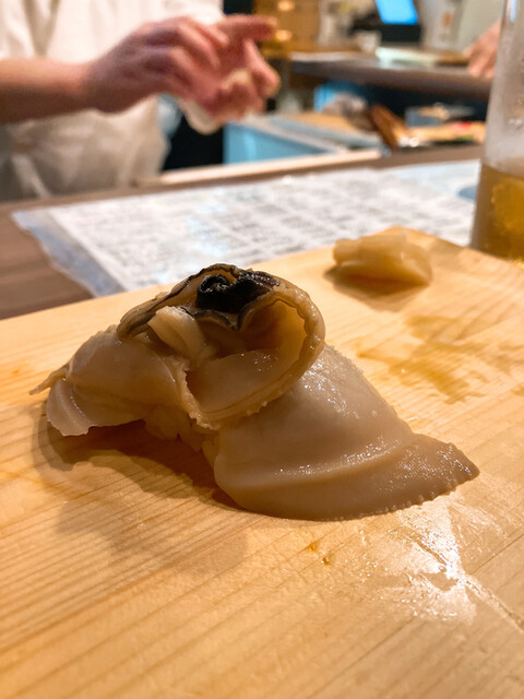この日は、特に鳥貝が抜群でした。さっと炙ってありますが、まだ神経が生きており、鮮度も良く、貝の旨味がしっかりと堪能できました。
