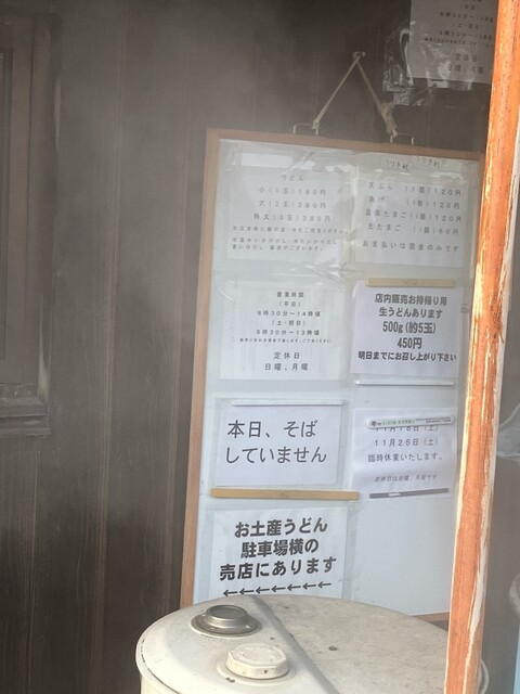 この日は、祝日ということもあり、オープン時間が早まって私たちの到着と同時くらいに行列が進み始め、比較的早くうどんにありつけました。