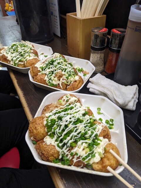 小腹を満たしに行ったつもりが3皿も食べてしまった、、、なんだかんだここのたこ焼きが一番好きかもしれない。外カリ中トロ、出汁が効いていて何もつけずとも美味い。コンニャク入が大阪らしい。おろしポン酢も頼んでみたが、ノーマルが結局一番うまい。