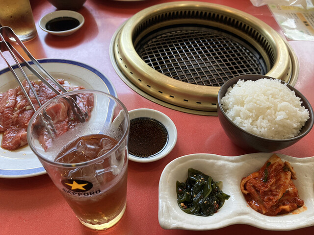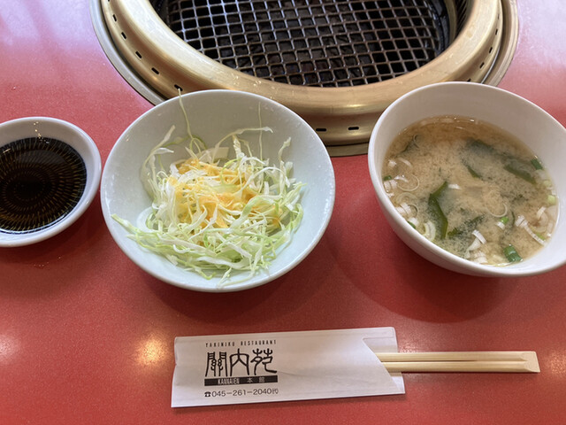 週末ランチする時に焼肉といえばココ推しをしてしまう関内苑さん。間違いないからね。時間的に土曜の11時過ぎで1組店外待ちがある程度。店内満卓の為、5分位で2Fの席に通される。ランチメニューを制覇したいのだが、自分は和牛定食1,100円、相方はブタカル定食1,100円に決めてました。御絞り、ウーロン茶、タレ、ミニサラダが運ばれてきた。今日は天気が良くウーロン茶が美味い。サラダのこのドレッシングを口にするとメインディッシュ焼肉を期待させるね。食べ終わる頃、和牛皿、ブタカル皿、味噌汁、キムチなど副菜皿の登場。焼き網のコンディションを確認するように肉を網に置きながらスープから頂きます。豆腐とワカメの味噌汁が安心するね。ほんと美味しいのだけれど、何となくテールスープが選べると嬉しい。これは見解が割れると思うが焼肉時、銀の茶碗、銀の箸、テールスープだとテンションあがるんだよな‥キムチは韓国唐辛子の本場の味です。和牛カルビはベタだけどジューシーで美味しい。焼き過ぎには気をつけましょう。相方の豚トロも食感が牛とは違って、これもアリだね。ご飯類の石焼ビビンバ、スープ類のユッケジャン、スン豆腐チゲ、麺類の冷麺定食もこれからの季節絶対食べたいね。有名店なので1人飯は気が引けるけど、散歩コース誰か相方誘ってまだまだ通いたい店です。ご馳走様