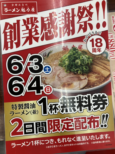 新福菜館が近くに無いので、天下一品か魁力屋でしか京都ラーメンが味わえません