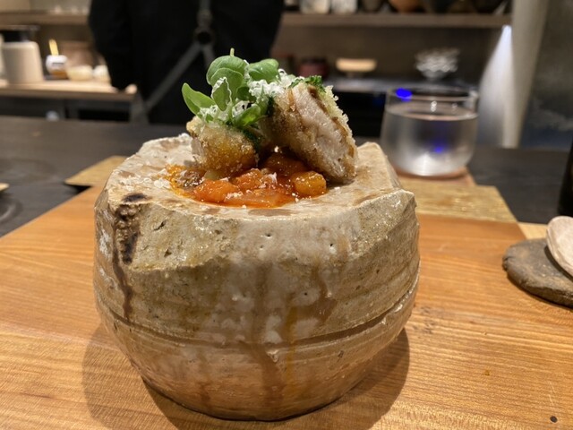 柔らかいハツと「みょうが」「桜エビ」のアクセントと「からすみ」か加わり一気に豪華