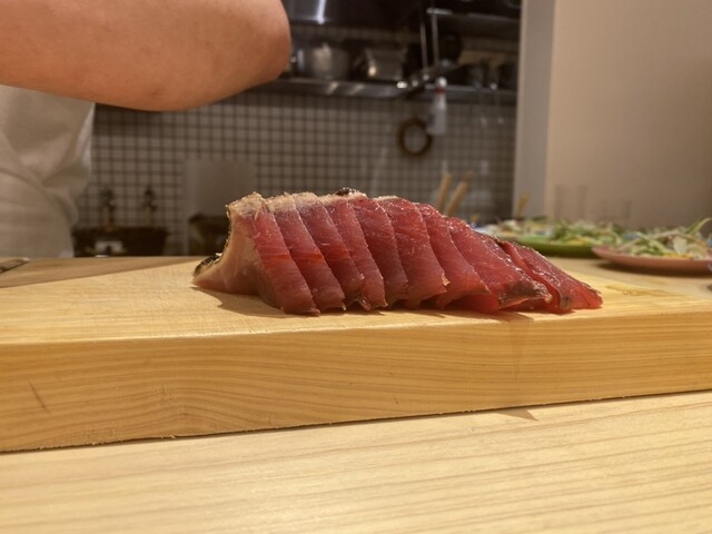高知初鰹の塩たたき(茗荷、オクラ、きゅうりのサラダ)