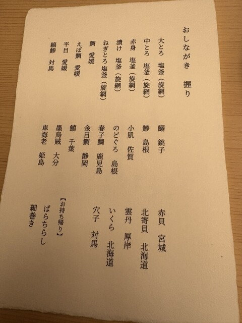 このあとは、赤貝、金目鯛、のど黒、中トロ、鯵、雲丹、いくら、赤だし、鮪漬け、蛸の柔らか煮、トロたくをいただきました。