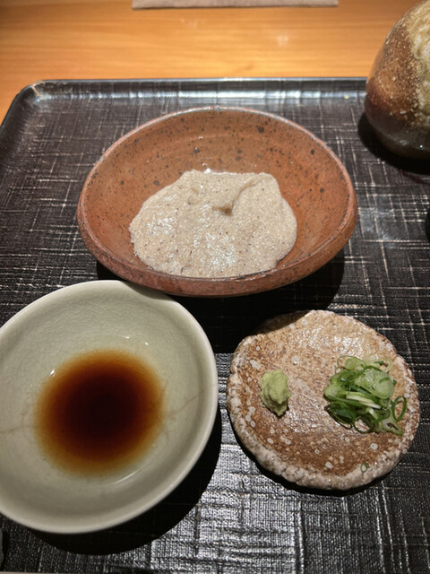 そばがきは、もちもちとており、独特の食感である。旨みが詰まった出汁でいただく。お酒に合う。