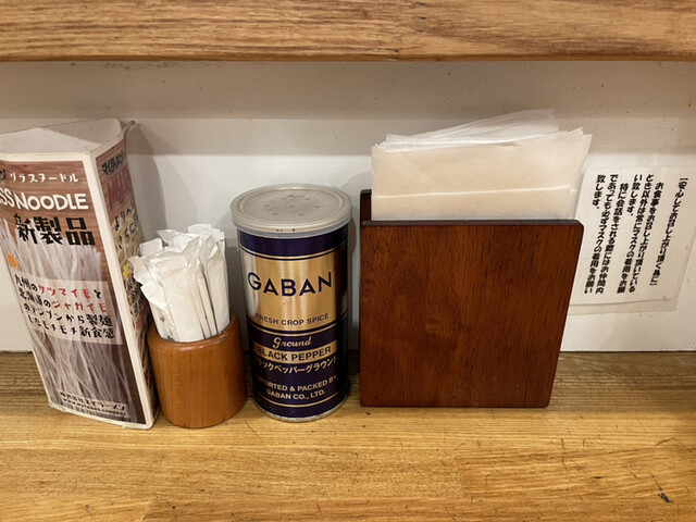麺完食後、酢を入れて酢割りを楽しみたい派なので、酢があるか聞いて見たところ、ありませんでした。残念。