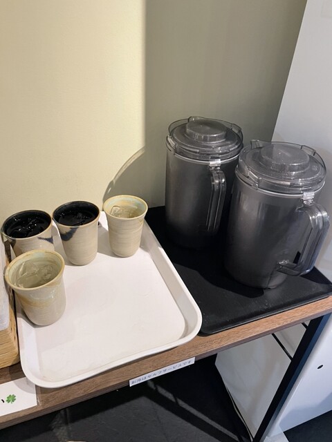 お水、紙ナプキン、紙エプロンなどは券売機横にてセルフ。