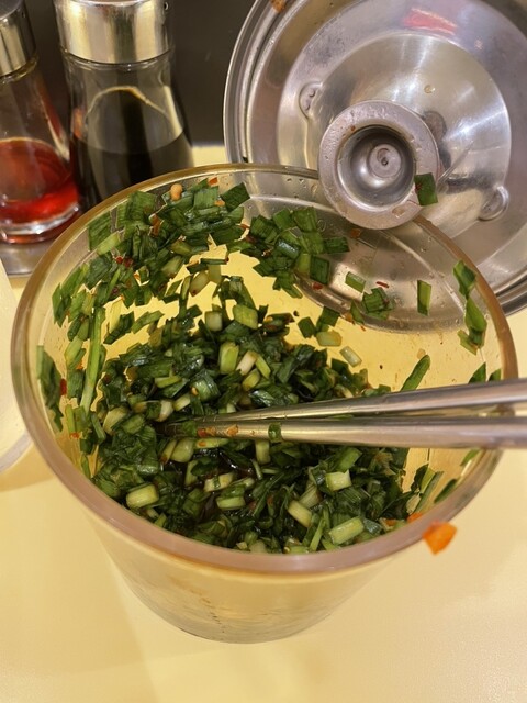 その後、卓上にある無料の辛ニラも入れて