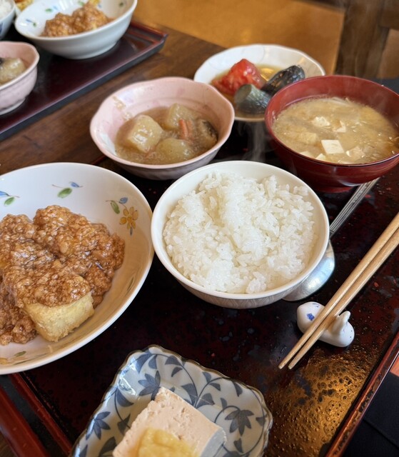 あんなに美味しい煮浸しは食べたことがないし、揚げ豆腐のカリっと感とそぼろのお味の良さ、大根の味のしみ具合、ご飯の炊き方、これだけでご飯が進みそうな美味しい美味しいお味噌汁
