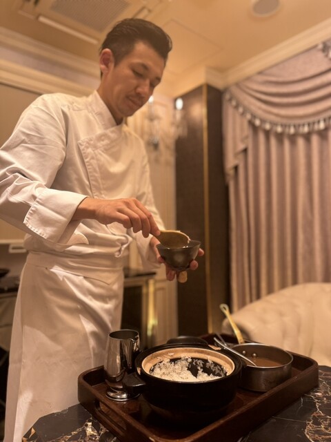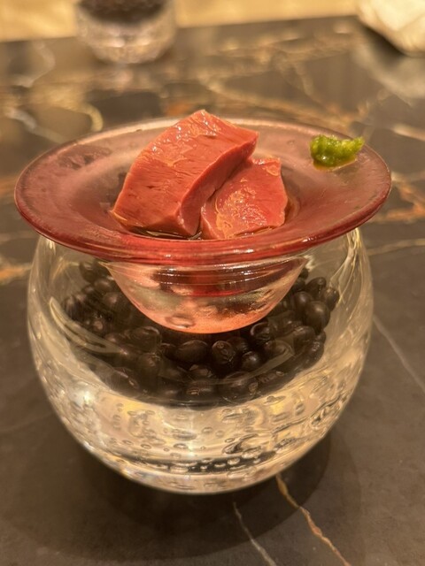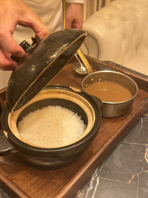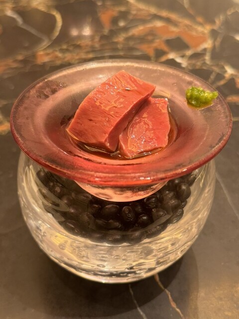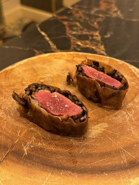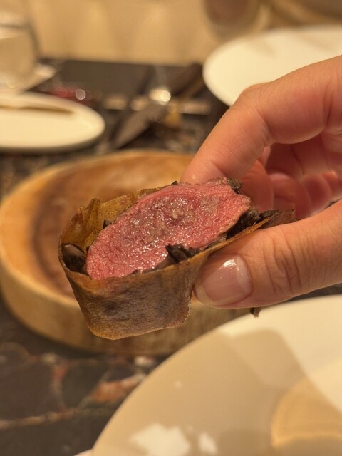 お肉を2度溶岩石2000℃表面焼いたもの。