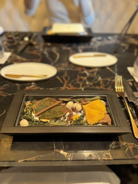 クエを覆い尽くす、茸のスライス。秋の香り。