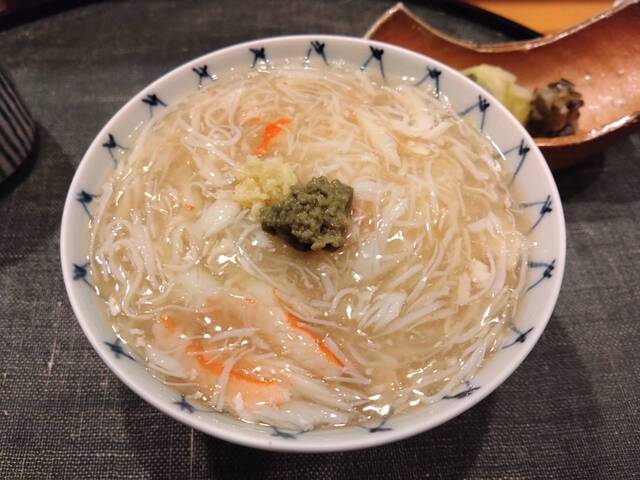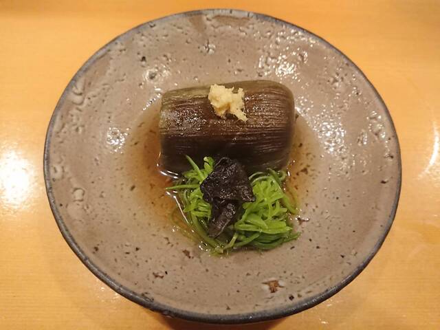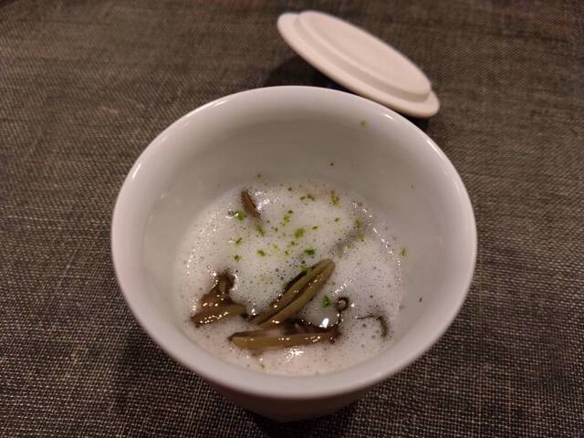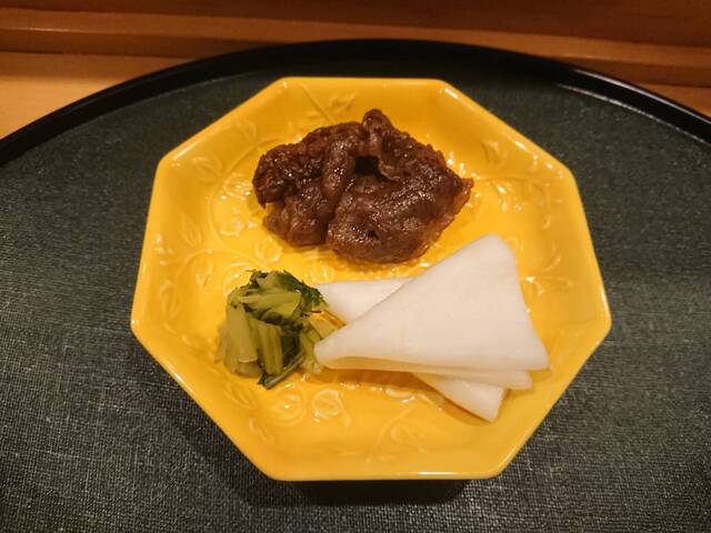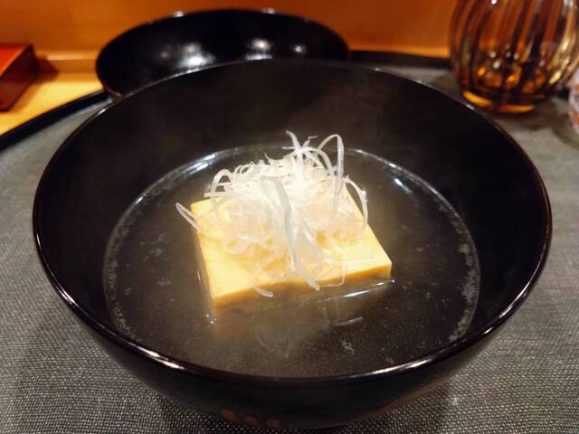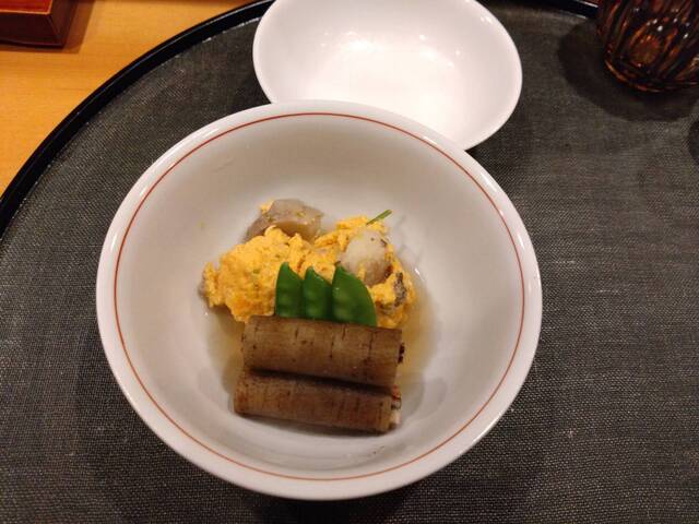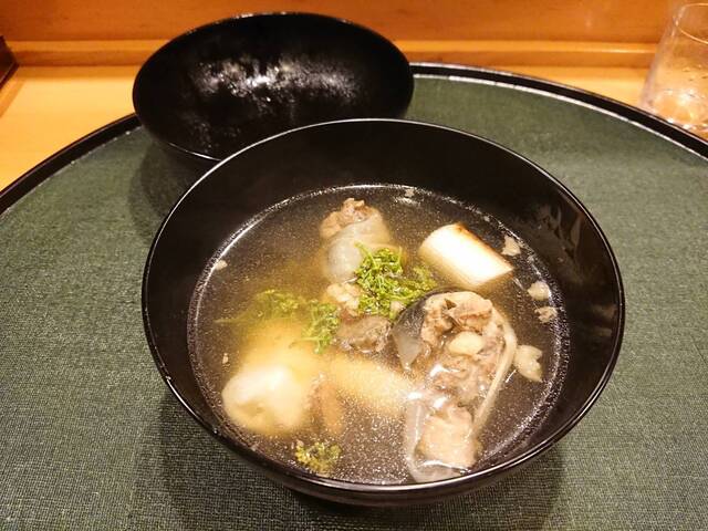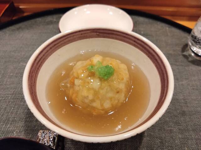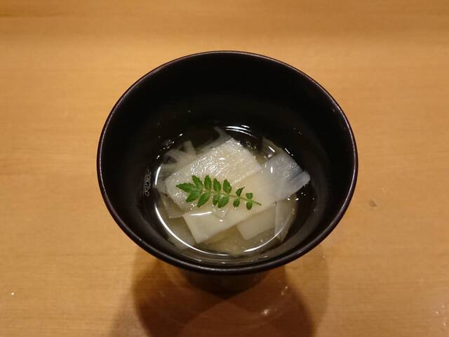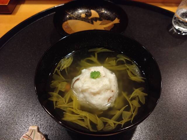 まず椀の蓋を開けた時の香気の初撃にヤラれ、次に船を模様した昆布船の見た目の美しさにヤラれ、そして吸い地にヤラれ、椀種を崩していき、味が変化していくのに感動しました!