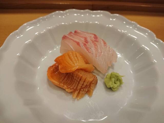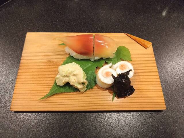 グジのお寿司はグジの旨味とそれを邪魔しない茗荷の強すぎない酸味。