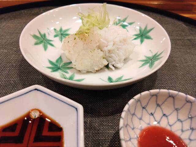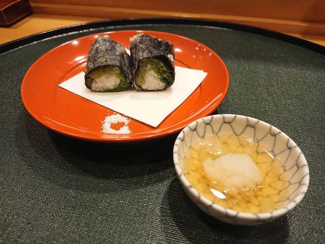 鱚の梅肉巻きは鱚がフワッとした食感で優しい美味しさ、でも梅肉が物足りなさを感じさせません。
