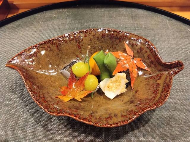山葵、出汁、栗、グジの旨味がグラデーション。