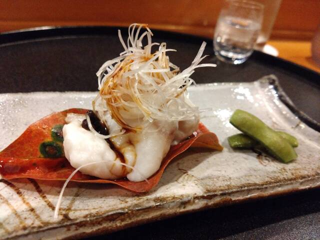 鮟肝を豆腐真薯にするとゆっくりたっぷりと鮟肝を味わえる感じがします。