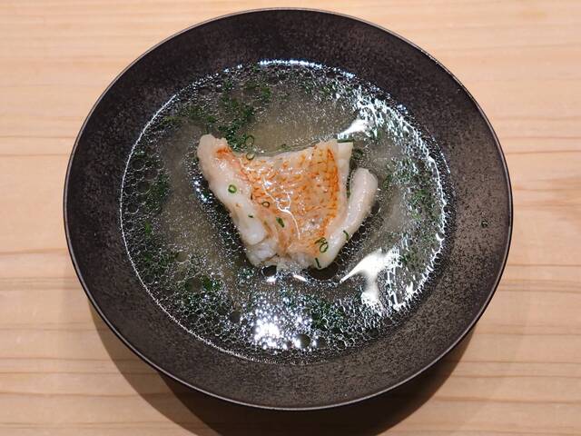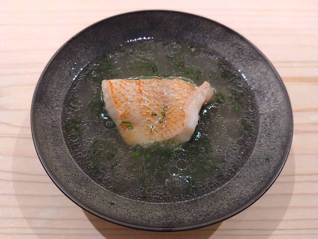 カチッと焼いているのに皮のゼラチンが際立ち、身はフワフワの完璧な火入れ。