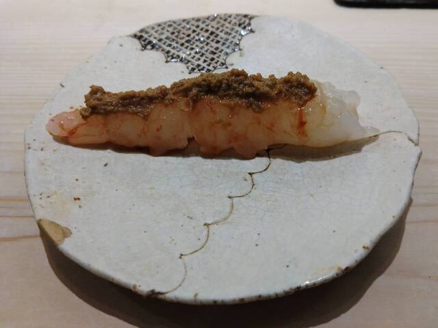 雲丹と鮑の衝撃が強すぎて、海老がまさかのクールダウンの一貫に。