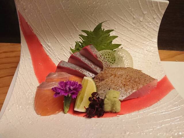 *造り・海の幸三種盛り 三種の味で 平政 鱒 石持